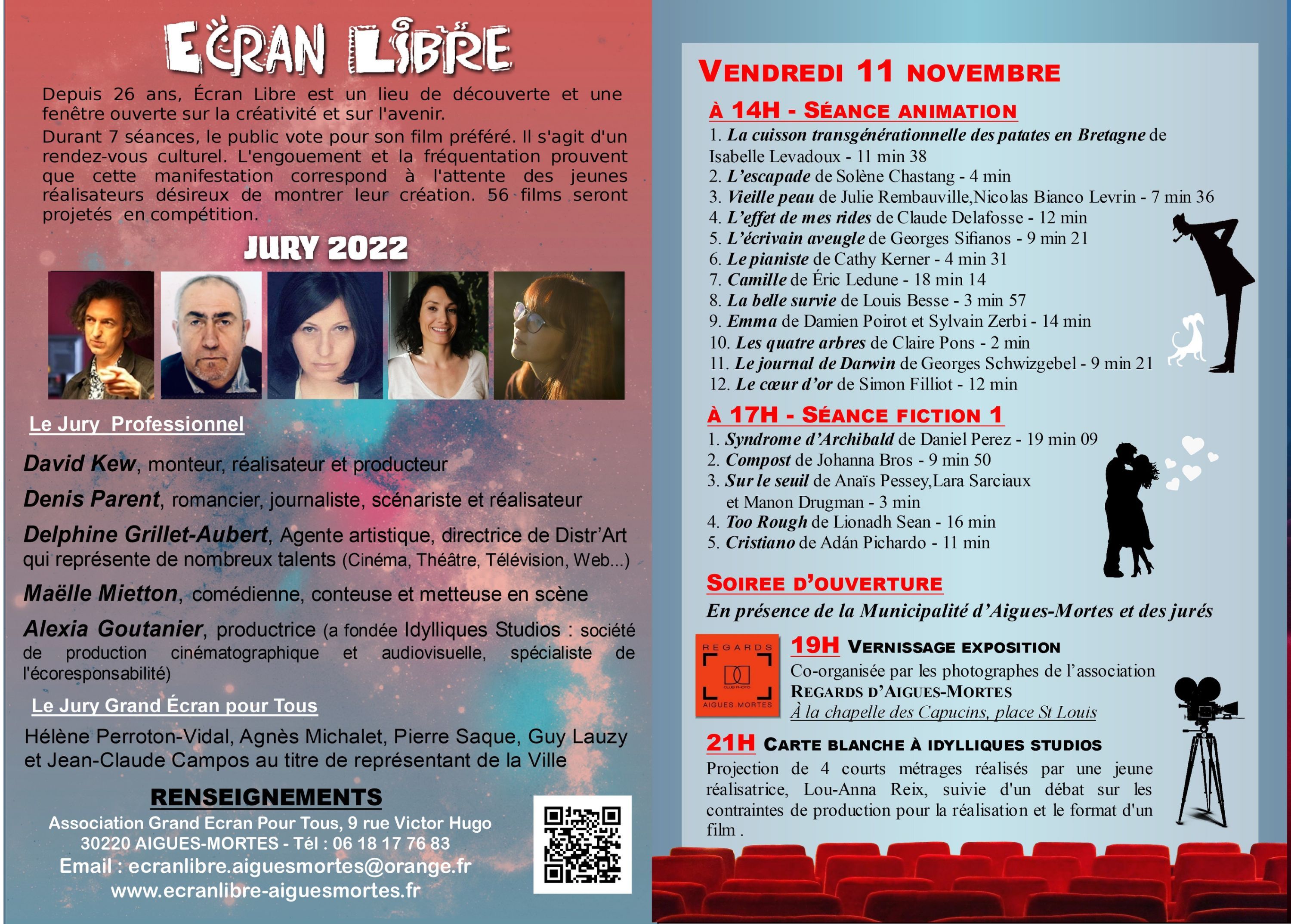 Carte blanche sera donnée à Idylliques studios avec la projection de quatre courts-métrages de Lou-Anna Reix, en sa présence. Le lancement officiel aura lieu le 11 novembre, à 19 h, à la chapelle des Capucins en partenariat avec Regards d’Aigues-Mortes pour son exposition Différences.